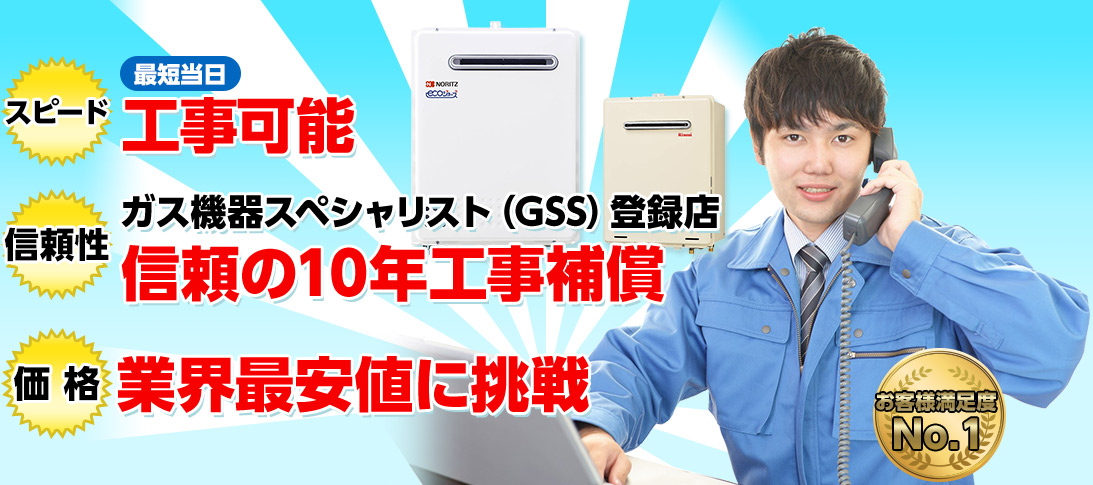 当社は日本ガス機器検査協会による「ガス機器設置スペシャリスト(GSS)」の資格を保有しているため、安心して工事をお任せ頂けます。確かな技術力があるからこそ、臨機応変に対応することが可能です。 |