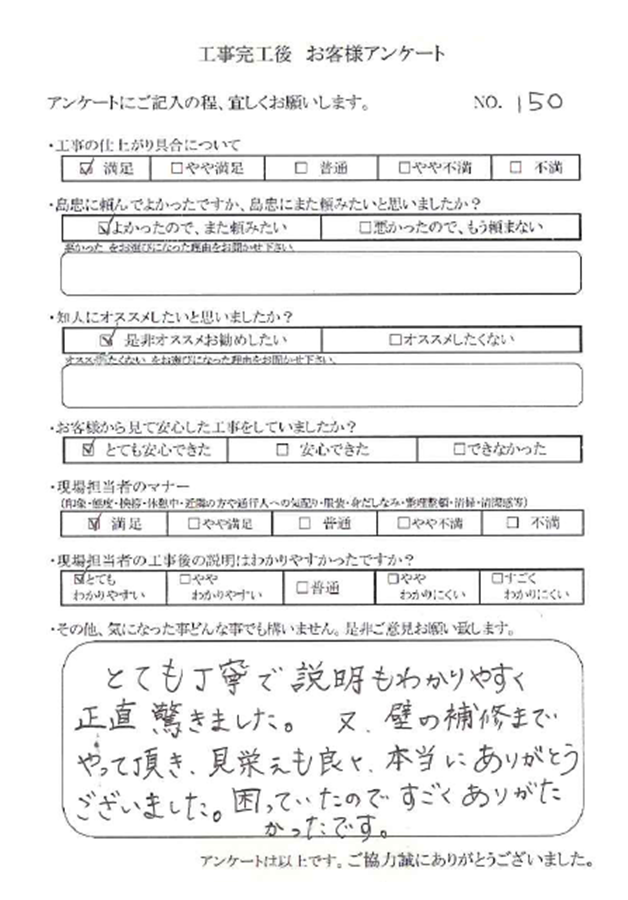 下見させて頂くことで、正確なお見積りを算出し、安心して工事をお任せ頂くことが可能です。 |